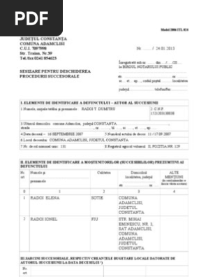 Sesizare pentru deschiderea procedurii succesorale românia jude. Anexa 24 nu atestă calitatea de moştenitor şi nici dreptul de proprietate asupra bunurilor mobile sau imobile deţinute de defunct. 24 model 2006 itl 024.