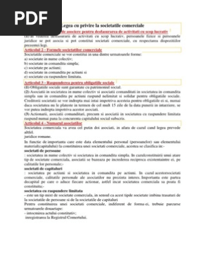 2371 din legea societilor comerciale(dispoziii care au introdus n legislaia noastr regula piercing the corporate veil), asociaii care se pun n situaiile. 13 x 20 cm coperti: Societatea in nume colectiv, societatea in comandita simpla, societatea in comandita pe actiuni, societatea pe actiuni si societatea cu raspundere limitata.
