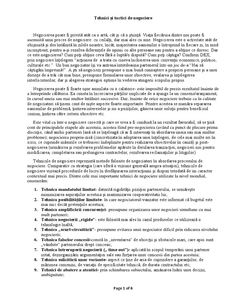 Tehnicile de bază utilizate în procesul de negociere sunt Aprobat de consiliul calităţii al usm. De fapt, politica uşilor deschise este destinată nevoii partenerului de negociere şi de şti, de a cunoaşte.