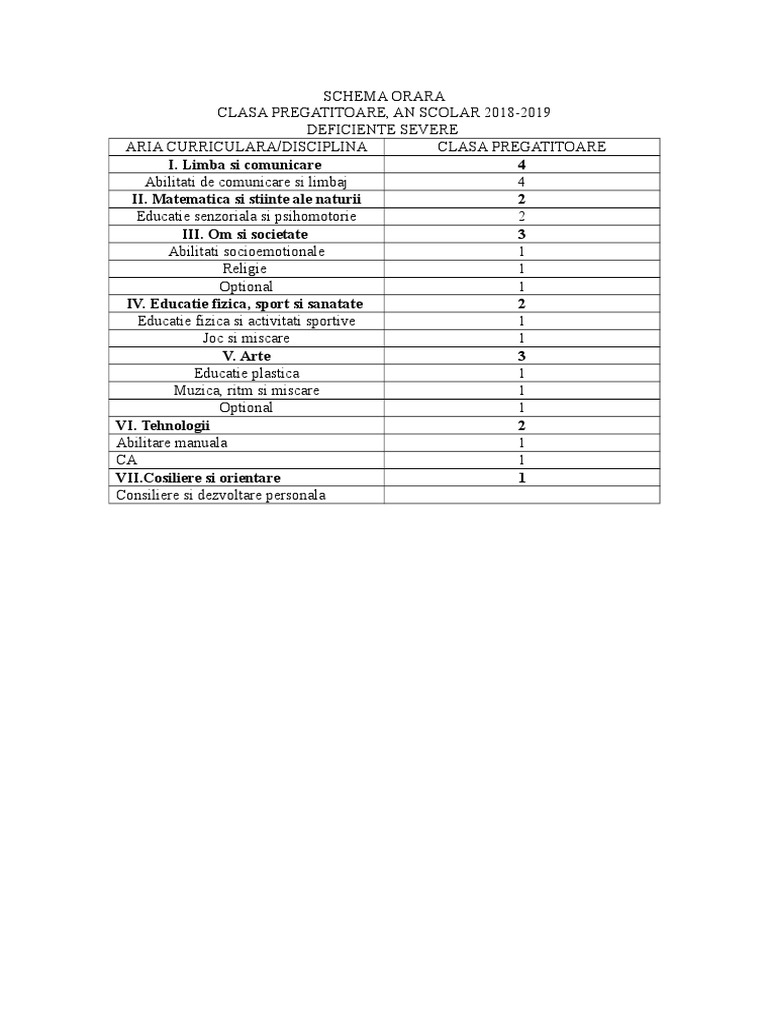 Planul Cadru Clasa 4